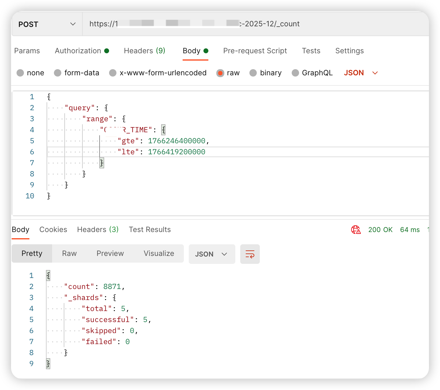 根源是 Elasticsearch 存储 date 类型的值时,使用的 UTC 时间戳,而我们传入参数使用北京时间,直接查询数据晚了 8小时,调整时间戳范围 +8 小时后,两种统计结果就一致了: