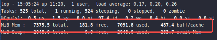 #这里展示了内存总量,剩余内存,使用的内存,以及缓冲区和缓存区的使用量