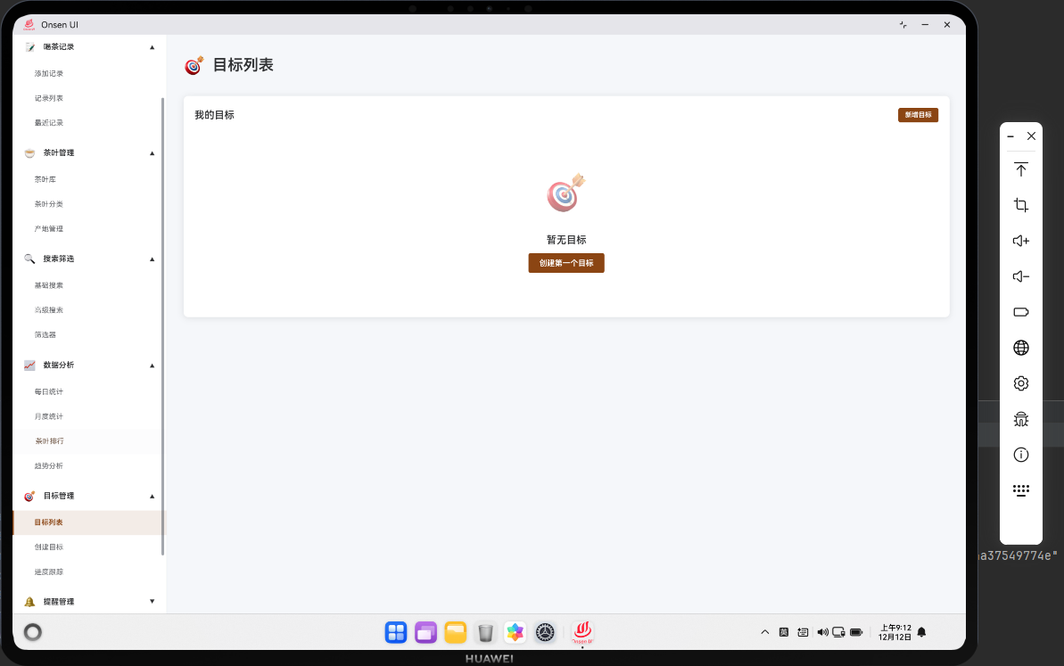 目标列表模块允许用户查看和管理喝茶目标。该模块集成了 Cordova 框架与 OpenHarmony 原生能力,提供了完整的目标管理功能。用户可以查看所有目标、已完成目标和进行中的目标。模块支持目标的编辑、删除和标记完成。