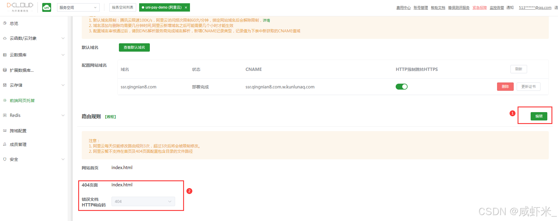 3.如果前端网页托管自己配置了域名并且开启了https配置了SSL安全证书,就勾上,如果没有配置https那么就不要勾选。