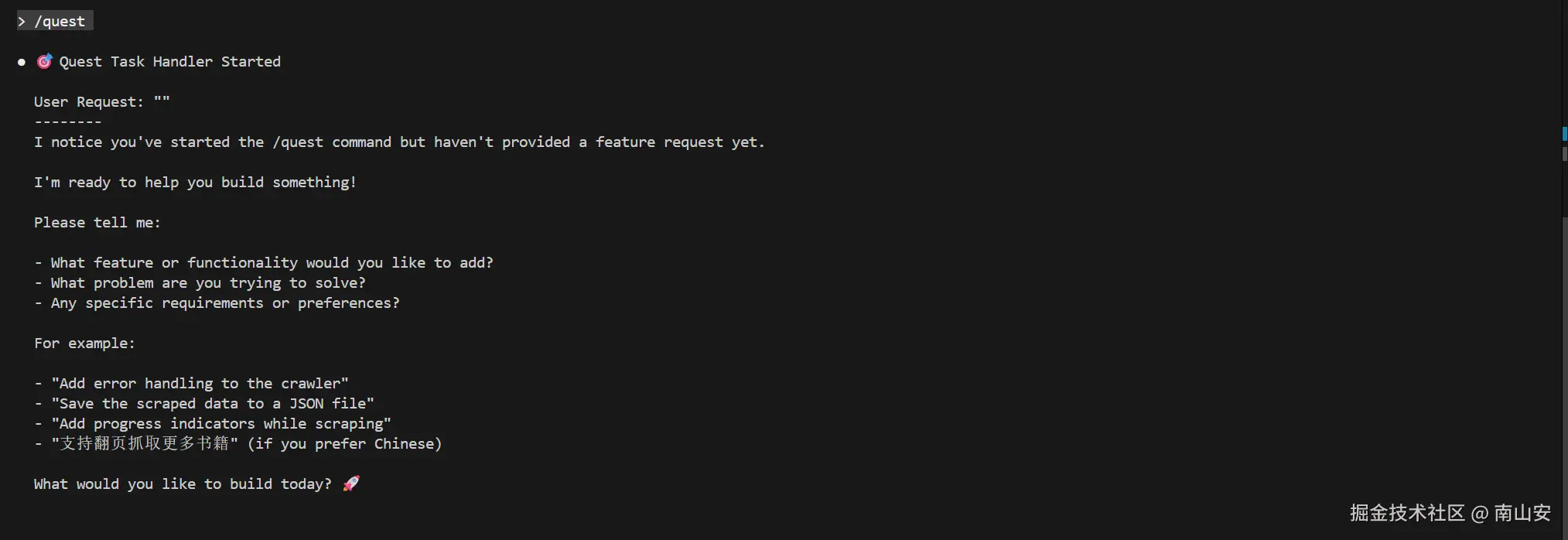 最近,我用Qoder CLI初始化了一个简单爬虫项目(类似文档中的豆瓣Top250爬虫)。过程如下: