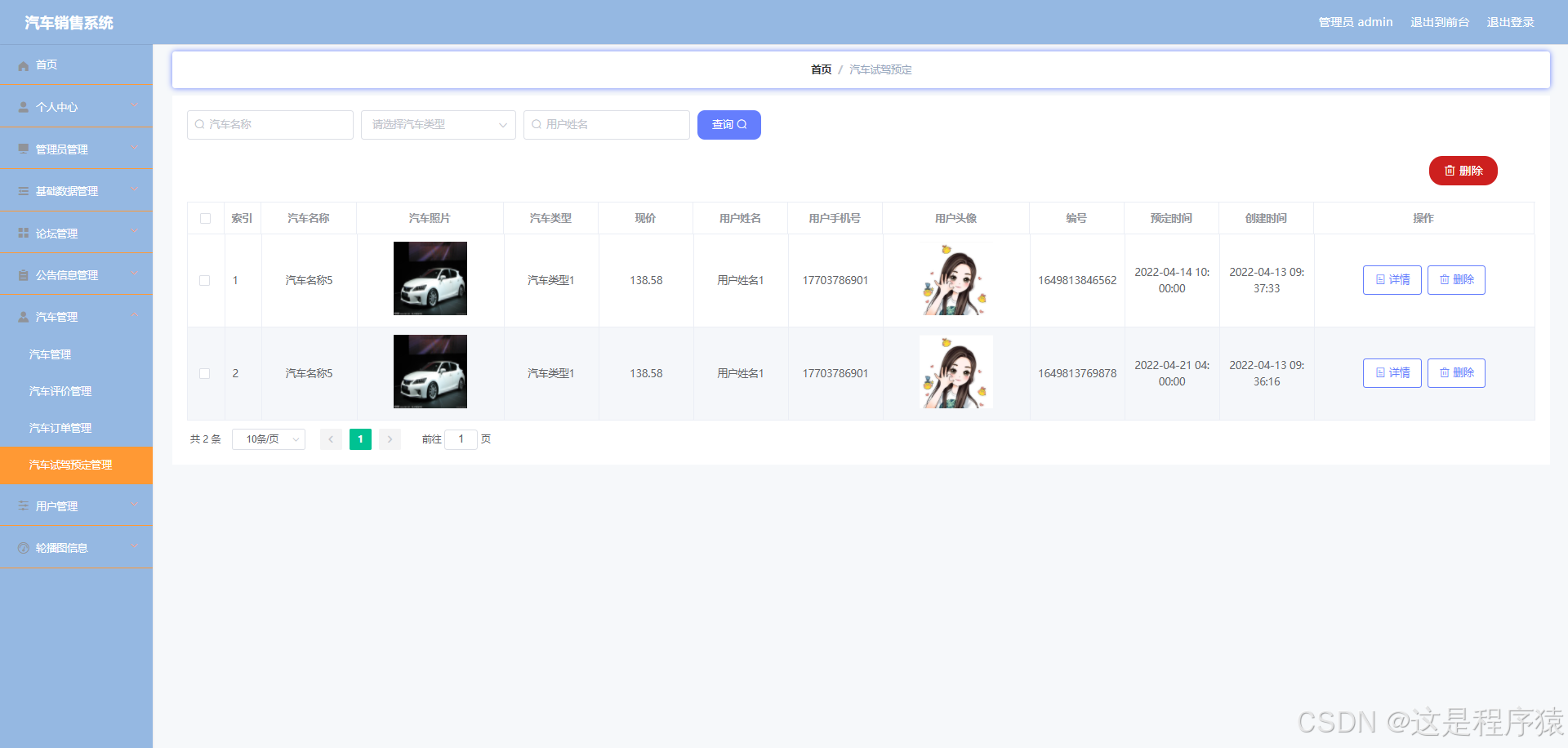 汽车销售系统可以实现用户购买汽车,预约汽车试驾,查看购买汽车的订单,在论坛模块发帖,回帖等,管理员管理汽车试驾预定信息,管理汽车订单,管理汽车等功能。该系统采用了Mysql数据库,Java语言,Spring Boot框架等技术进行编程实现。