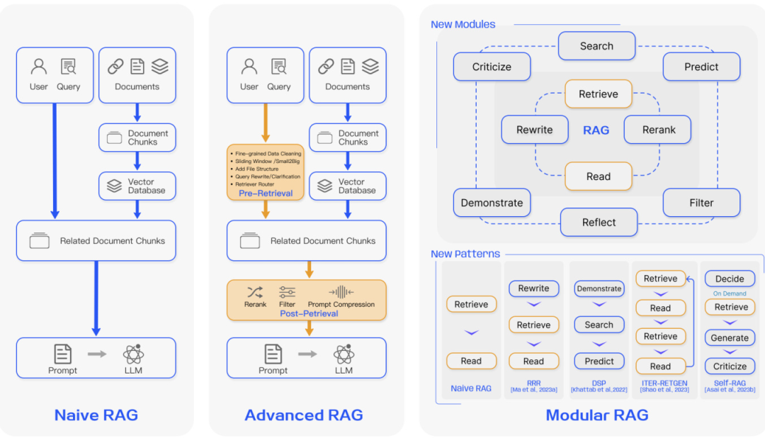 本篇论文分享了Naive RAG、Advanced RAG及Modular RAG的技术演进