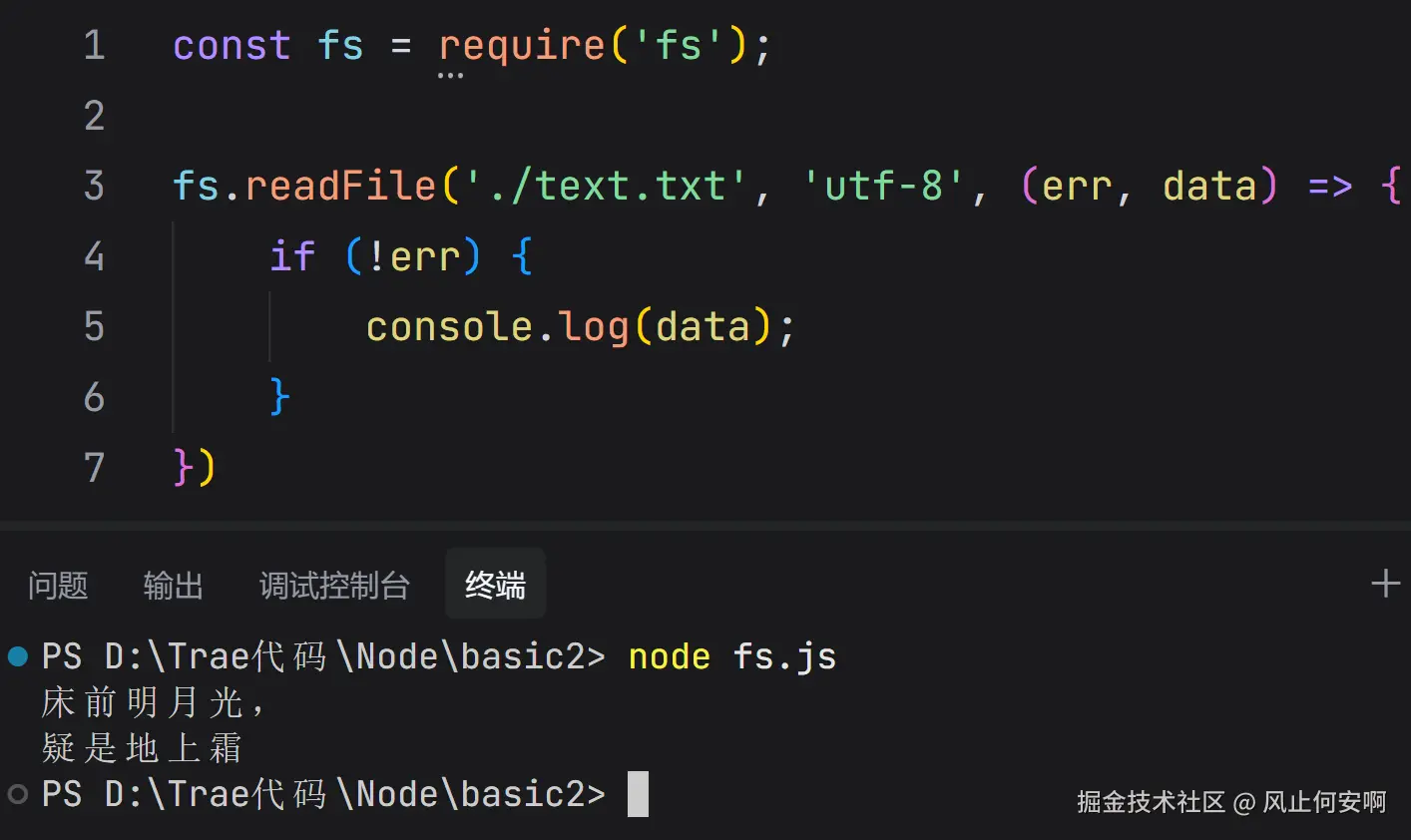 fs.readFile('./text.txt', 'utf-8', (err, data) => {