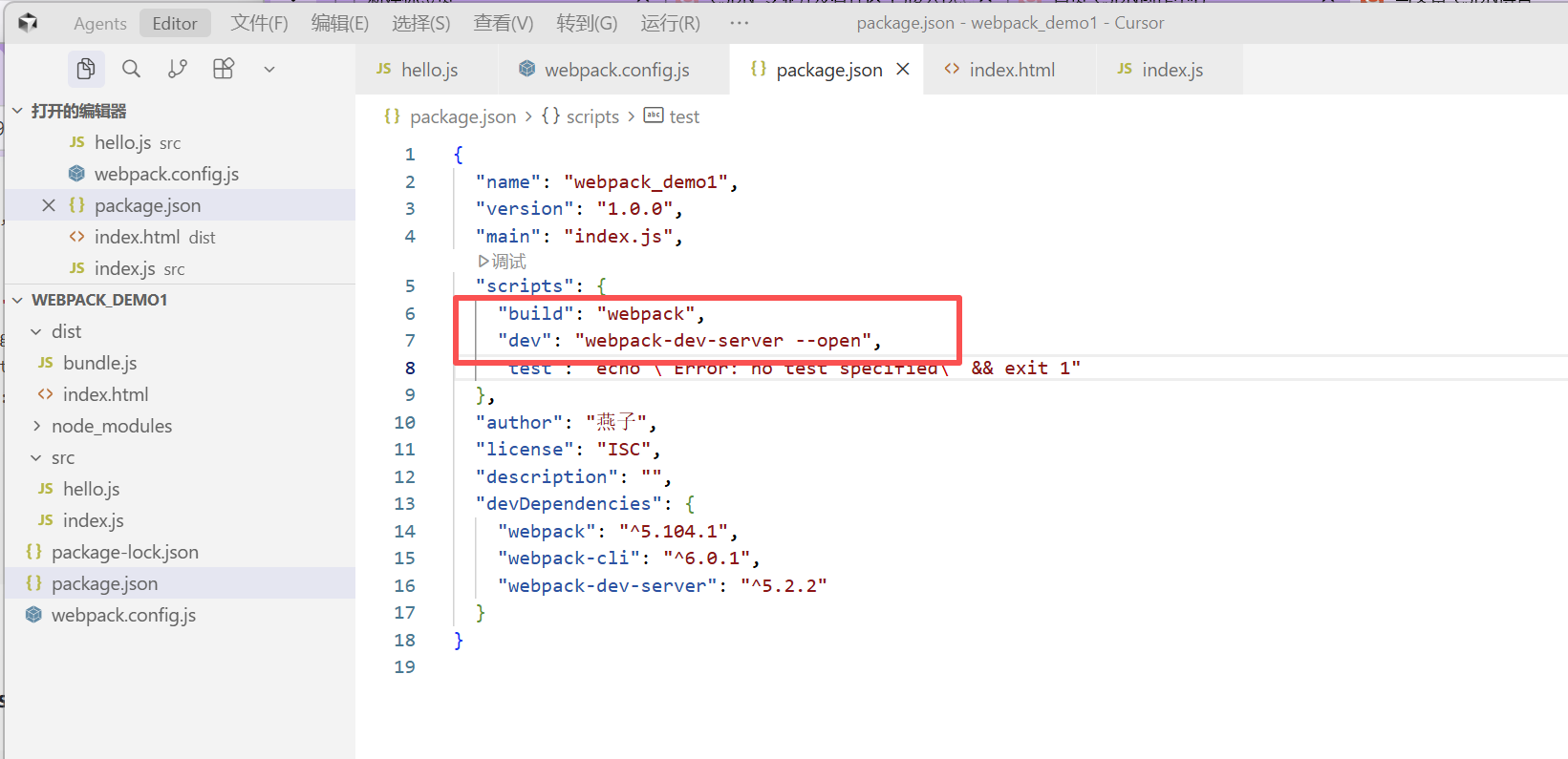 解释:devDependencies:只在开发 / 构建阶段使用。线上运行(部署到服务器)不需要。如果没有安装devDependencies,只能 webpack 打包。如果安装了devDependencies,可以 webpack serve / npm run dev。