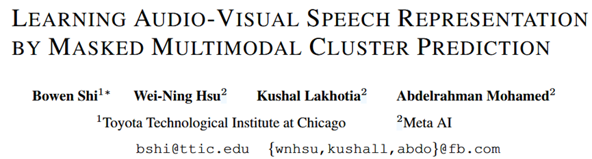 自监督学习的缺失: 现有的自监督语音表示学习(如wav2vec 2.0, HuBERT)主要集中在音频模态,尚未充分利用视频中音频和唇动之间的紧密耦合关系 。