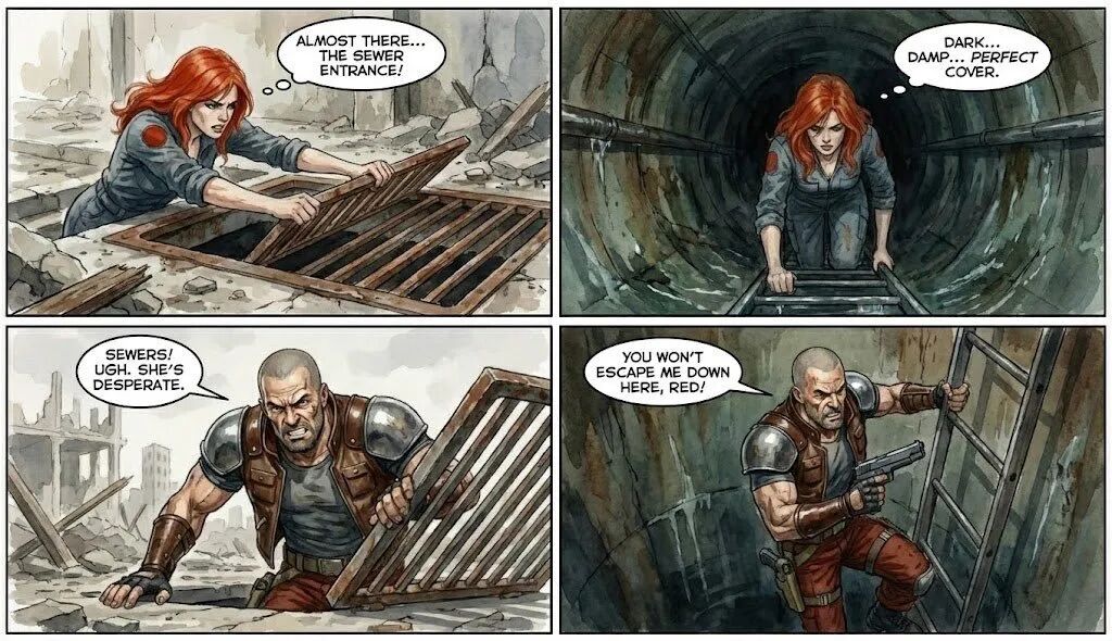 Using the multi-image input feature, we can have the same character maintain facial and feature consistency across different scenes, and even maintain similarity in group shots. This is perfect for creating comics or storyboards.
