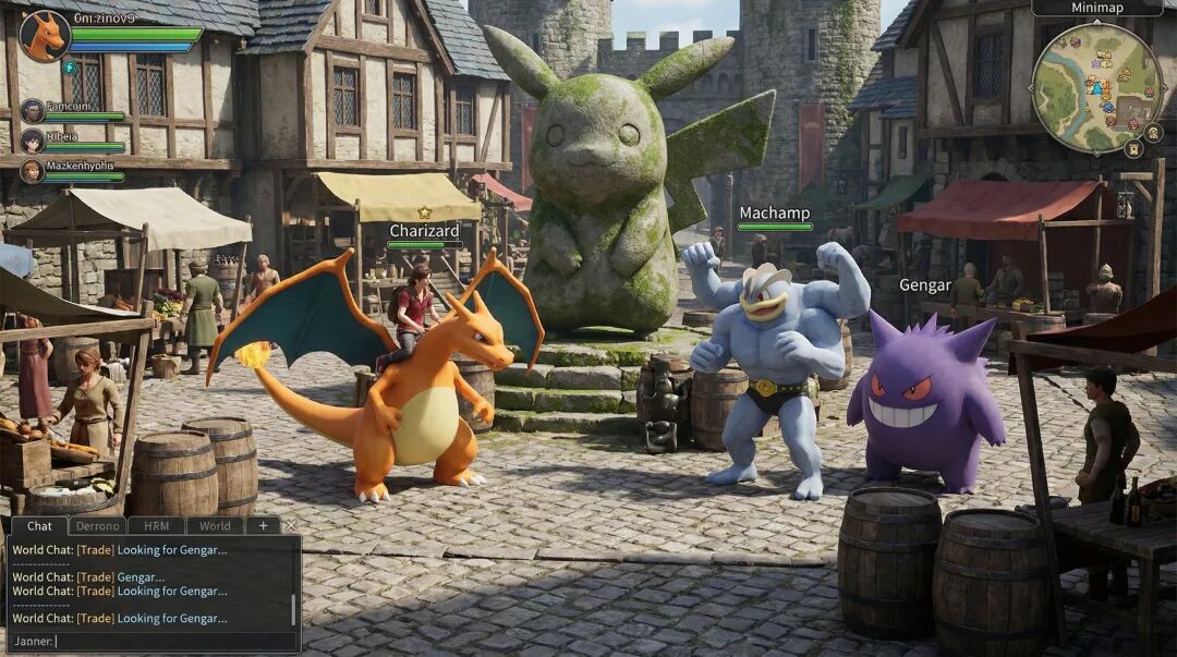 Prompt: 3D realistic-style Pokémon-themed MMO game screenshot