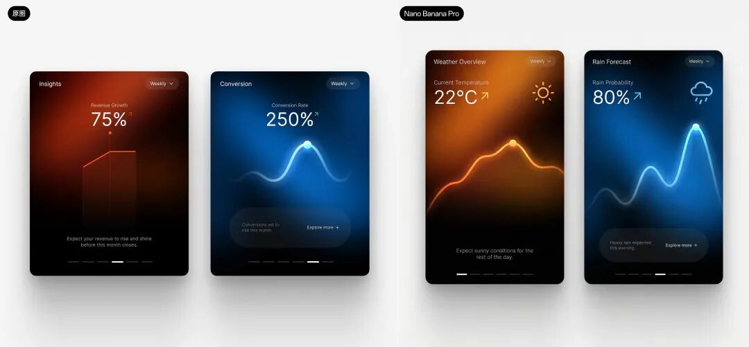 Prompt: Imitate this design's style and key element expression, help me generate a weather app UI design mockup