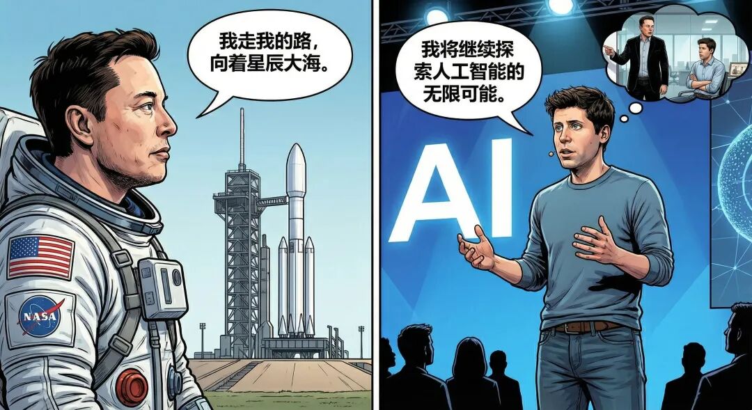 Prompt: Generate an original Genshin Impact real-time battle image, with the Traveler protagonist fighting boss Elon Musk, Musk standing on a hovering rocket armor firing energy cannons, image in 3D high-saturation fantasy Genshin Impact game style
