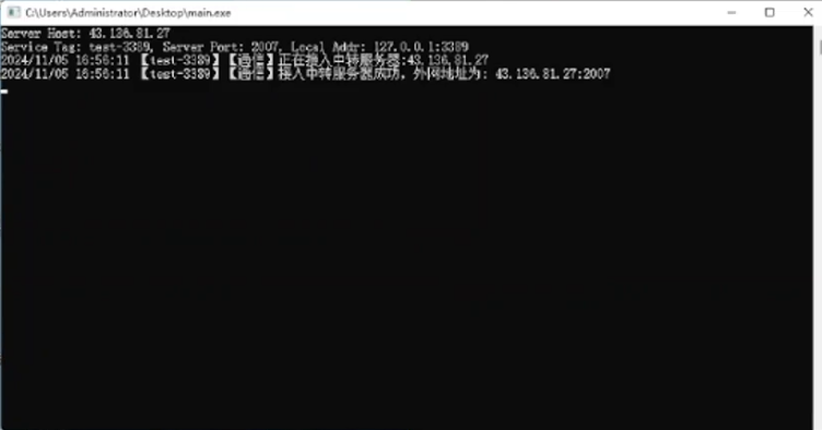 这样本地电脑将会连接到云服务器,云服务器将会监听 3333 端口,当有用户连接 3333 端口,那么云服务器将全部转发给家庭电脑,家庭电脑在连接到本机的 127.0.0.1:3389 端口,实现外网访问内网服务