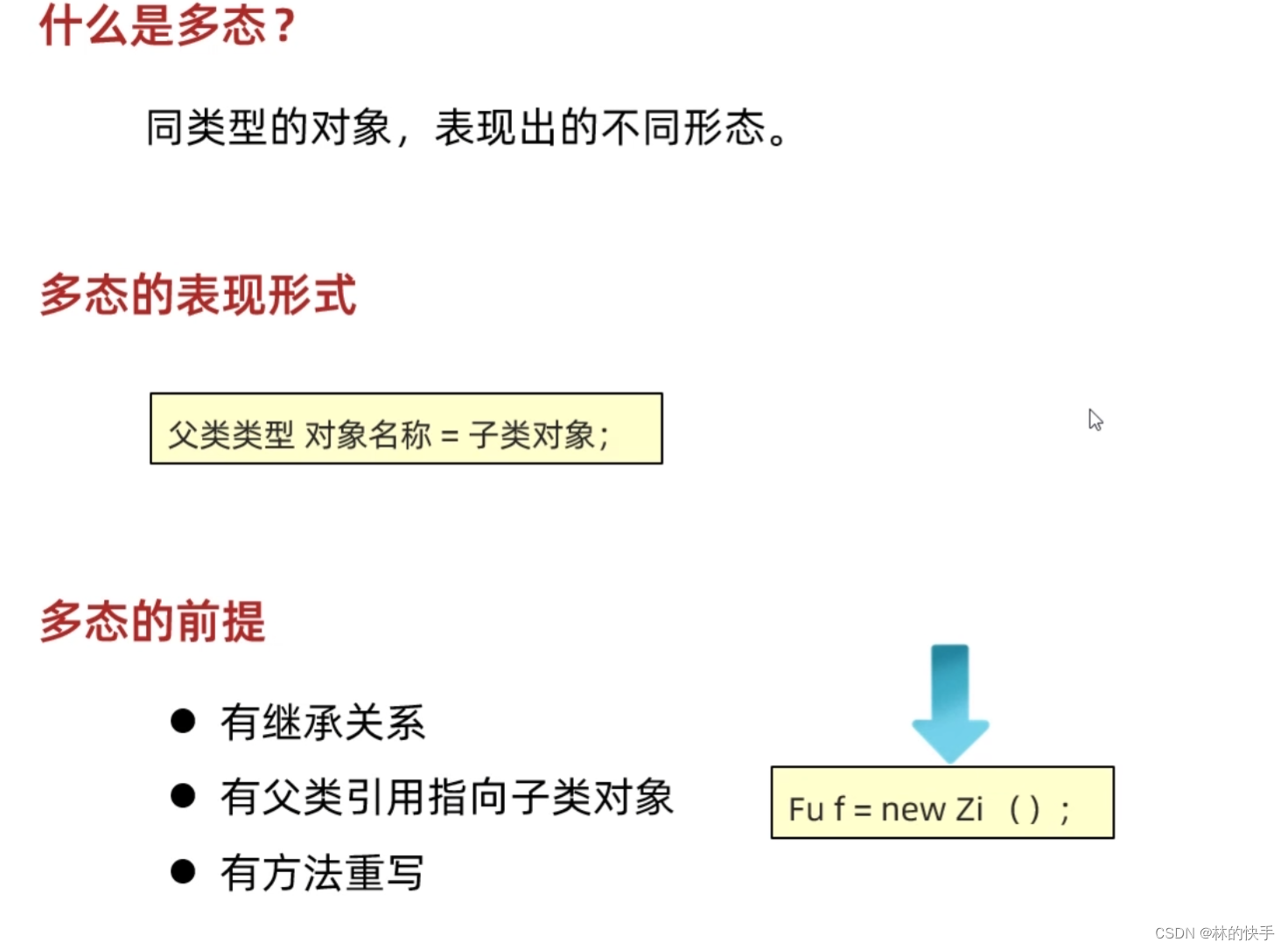 简言之:继承是多态的前提,多态是继承的高级应用。