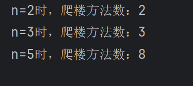 print(f"n=3时,爬楼方法数:{solution.climbStairs(3)}") # 输出3