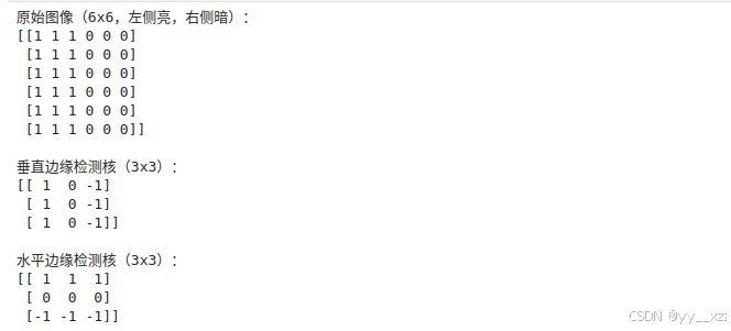 print("原始图像(6x6,左侧亮,右侧暗):")