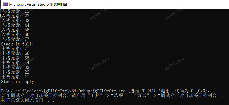 // 栈FILO-C++.cpp : 此文件包含 "main" 函数。程序执行将在此处开始并结束。