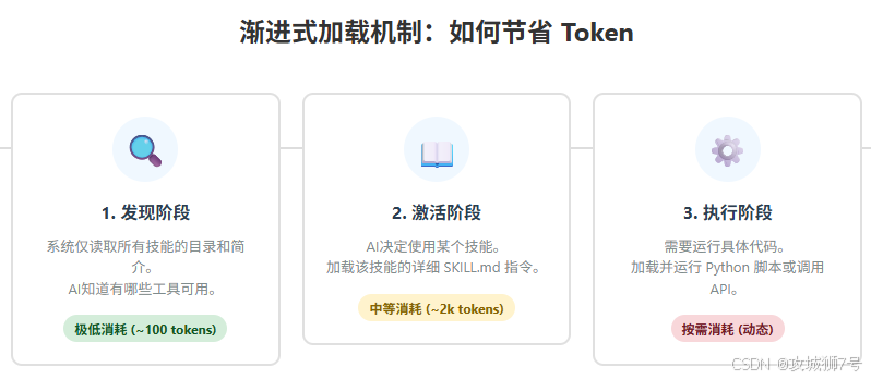 Skills项目引入了一个非常聪明的机制:渐进式加载。