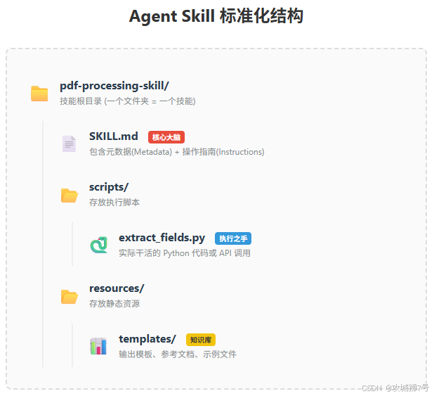 这种设计的好处是显而易见的。当AI需要处理PDF时,它就去调取"PDF处理"这个文件夹;当需要分析Excel时,就换成"Excel分析"文件夹。