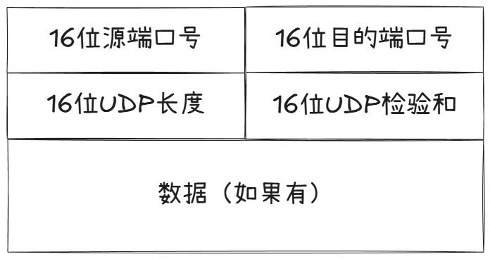 - 头部开销小:仅8字节头部(TCP为20字节),传输效率高。