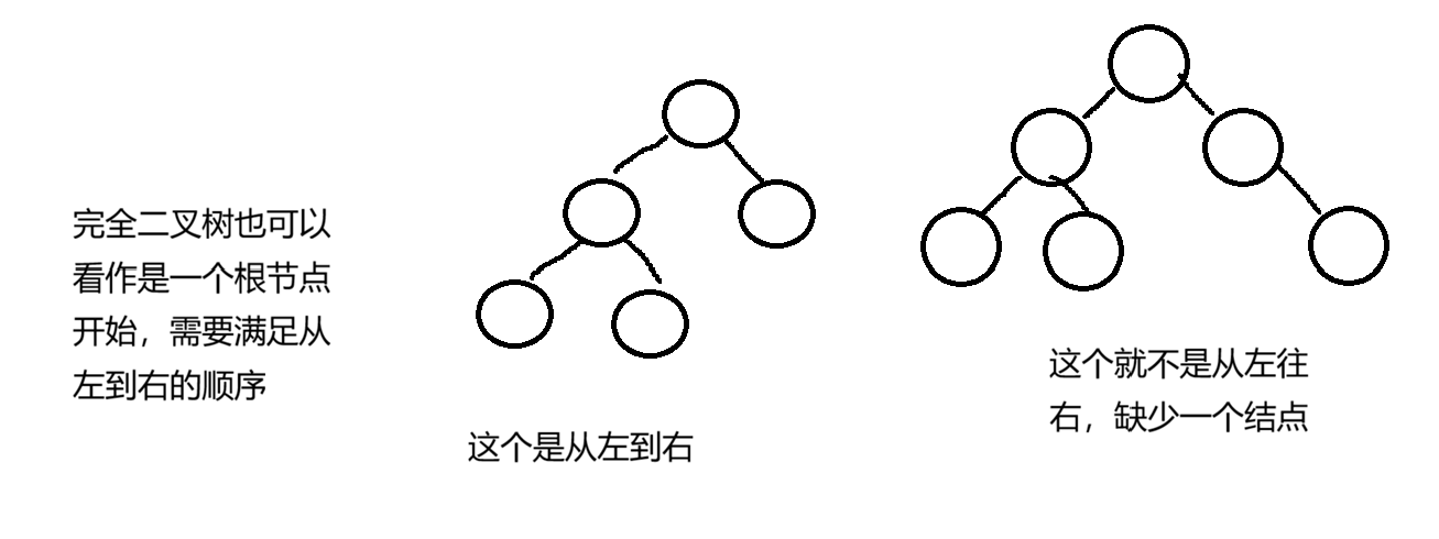 而且上面的完全二叉树其实也能算是从左往右的,因为完全二叉树要求结点必须包含左右子树,所以一定是满足从左往右的~