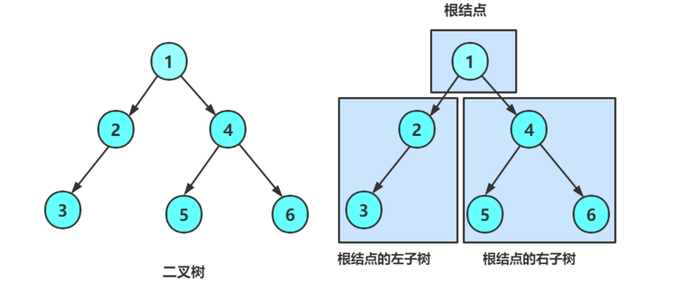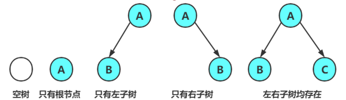 一棵二叉树是结点的一个有限集合,该集合:1. 为空 2. 或者是由一个根节点加上两棵别称为左子树和右子树的二叉树组成。