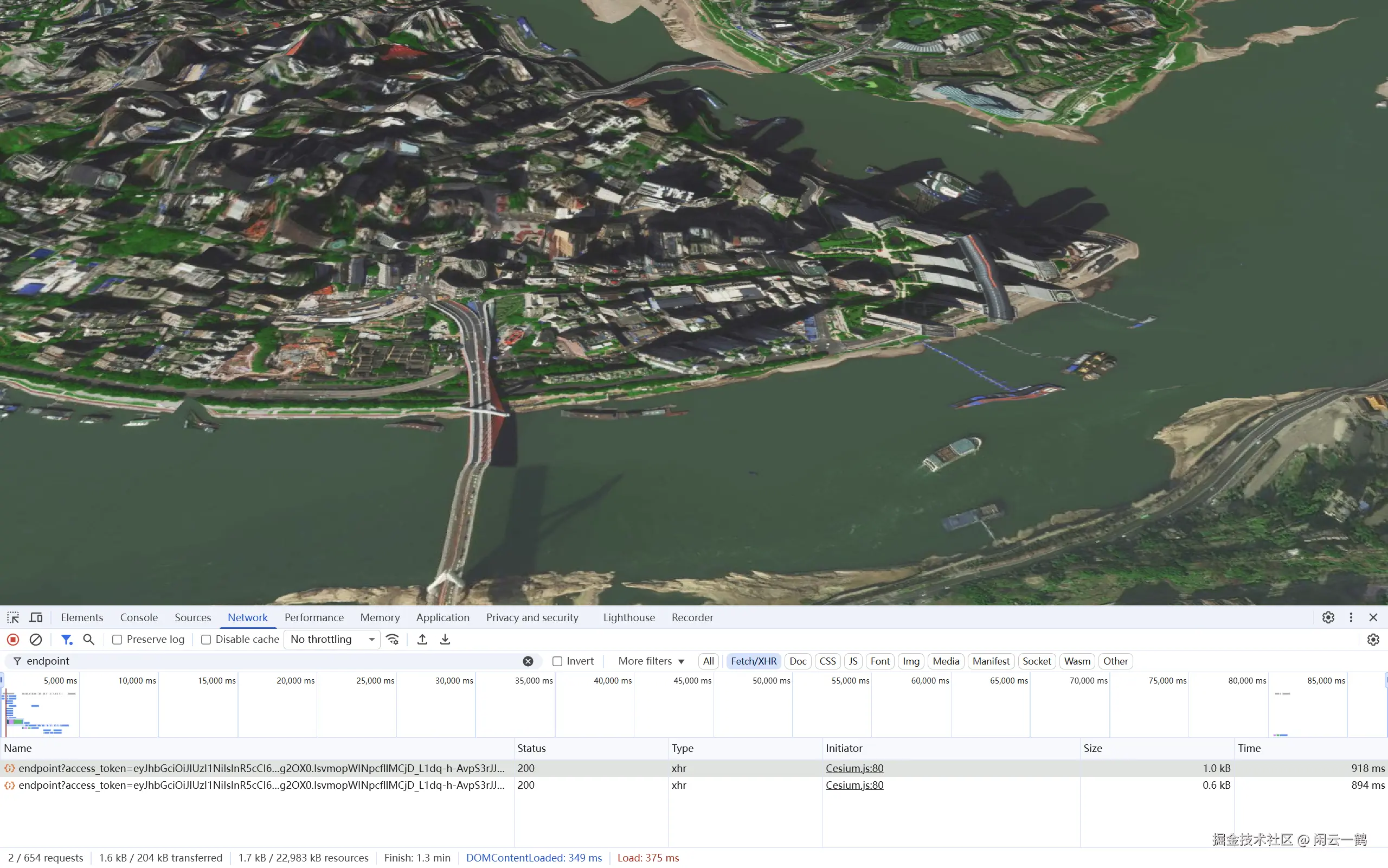 这两个接口请求分别是加载 cesium 默认的地形数据和地图瓦片(其中 assets/1 是地形,assets/2 是瓦片)由于 cesium 服务器在国外,所以网络波动等原因会导致访问不稳定,从而影响地图加载速度