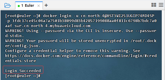 docker login -u cn-north-4@HST3W7LCLCYJTLRUXAQ8 -p b609912e4518d308e924b51e785c7c8e128d406845a2c294c075f75bf55f44ae swr.cn-north-4.myhuaweicloud.com