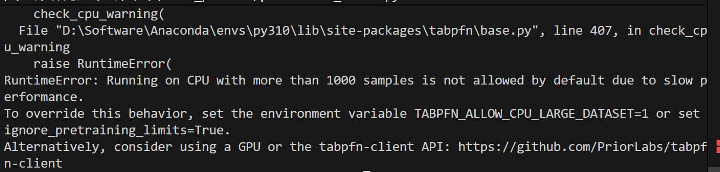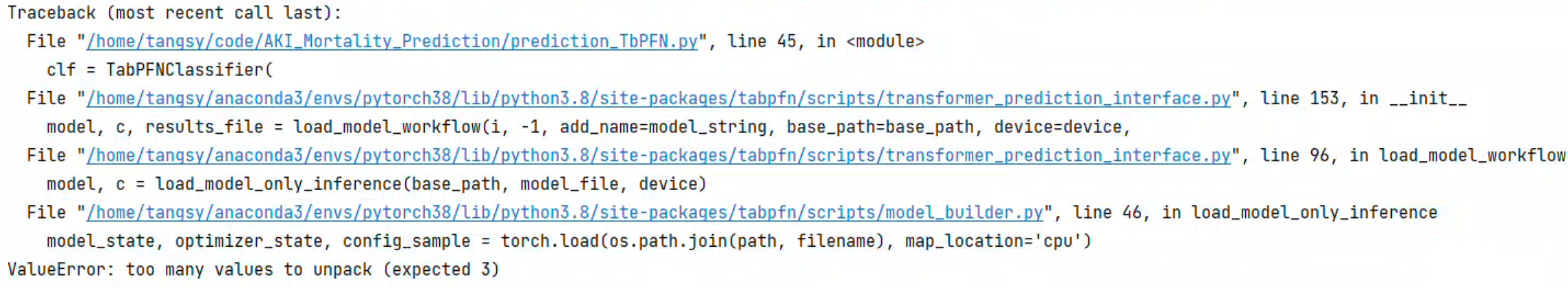 于是使用服务器进行实验,但这里出现新的问题,可能还有一些是参数不对,这是由于下载的版本和权重文件不符合,因此导致对不上。(ps:tabpfn一定要python>=3.9)