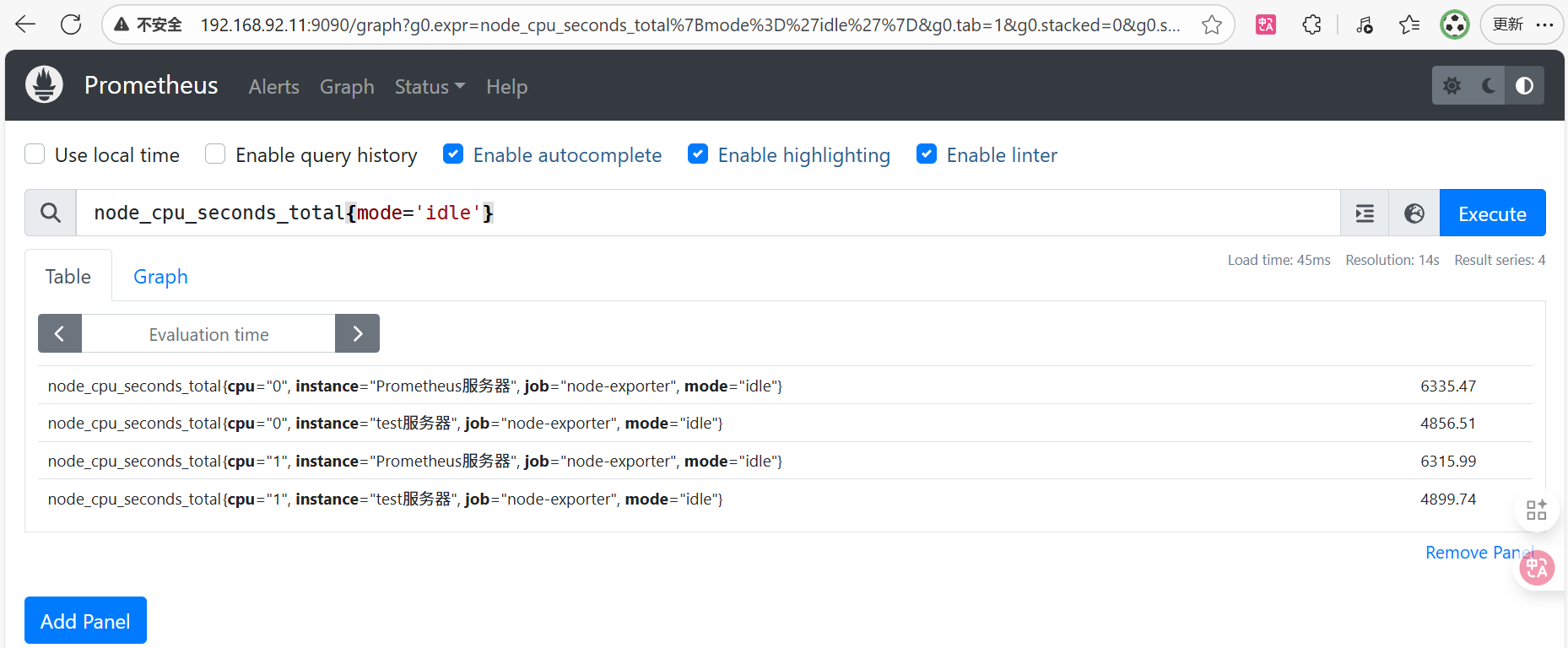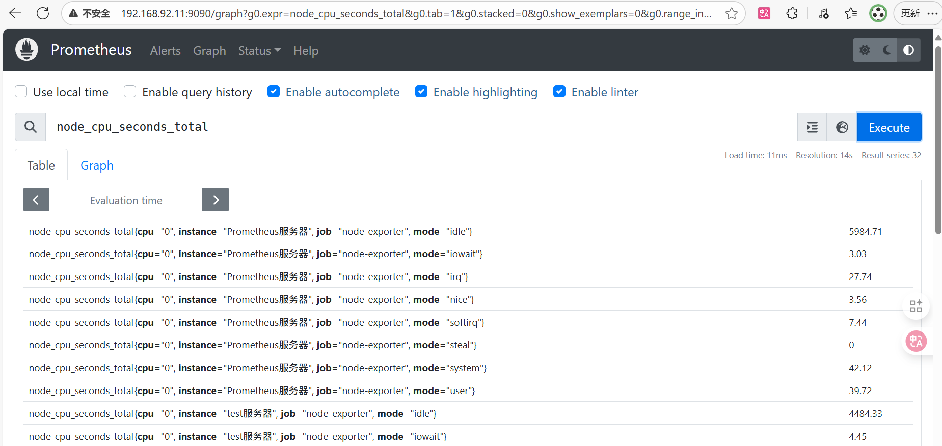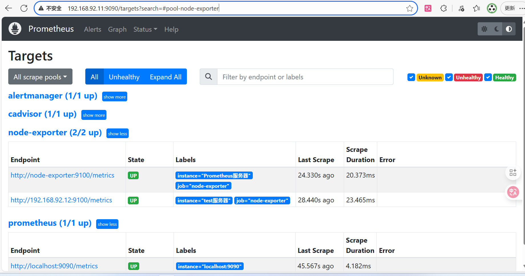 | Prometheus服务器 | 192.168.92.11 | docker模式的prometheus |