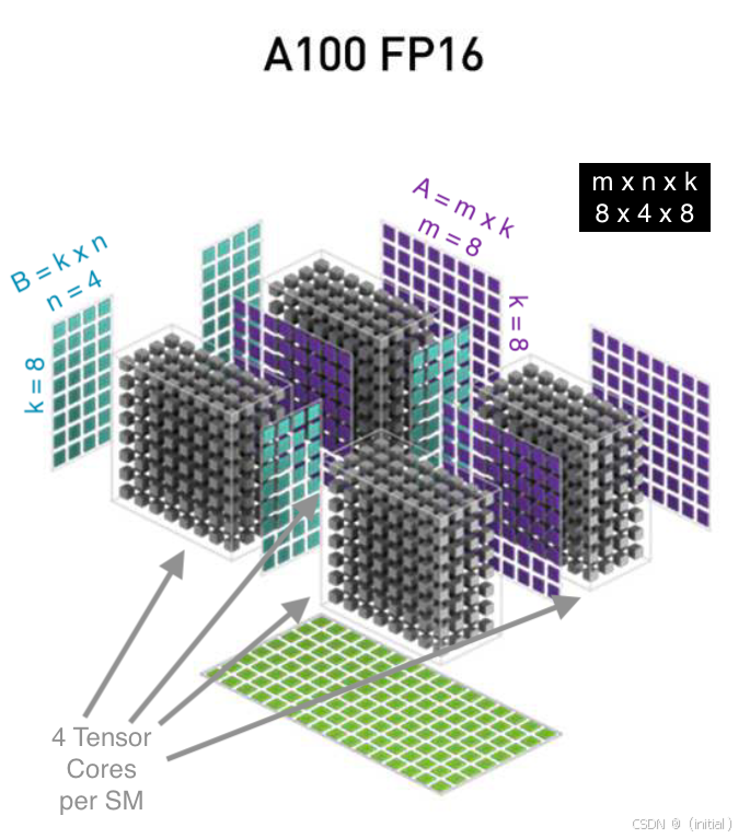 - 寄存器和共享内存: Tensor 核心可以访问高速寄存器和共享内存,用于存储中间结果和线程束内线程之间共享的数据。