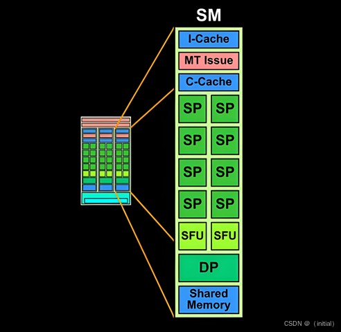 SM是GPU内部的基本处理单元。GPU中SM(流式多单元)的数量是决定其整体性能的关键因素。