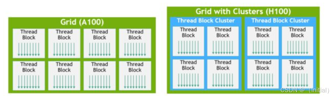 - Clusters:允许 GPC 内的多个 SM (例如 2, 4, 8 个) 组成集群。