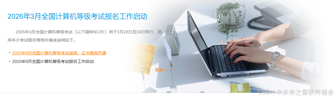 NCRE采用网上报名方式。报名时间为2025年12月26日9时至2026年1月4日24时。