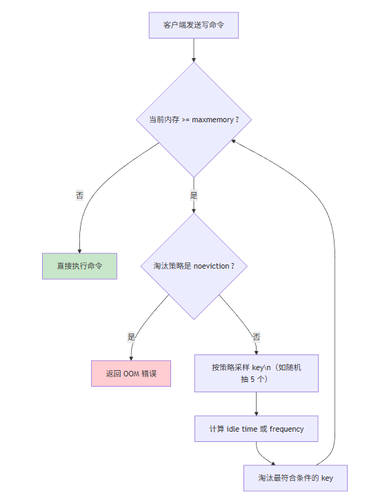 当 Redis 内存使用达到 maxmemory 限制时,Redis 需要决定删除哪些数据。这就是内存淘汰策略。