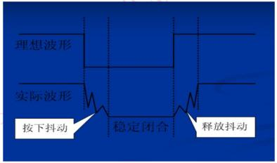 通常的按键所用开关为机械弹性开关,当机械触点断开、 闭合时, 电压信号如下图所示: