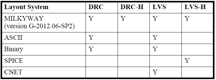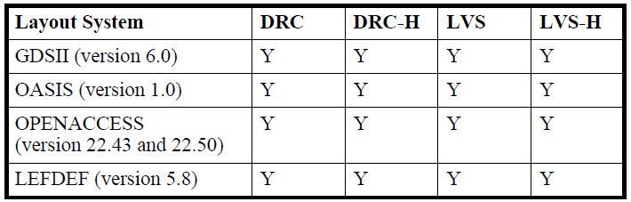 | 版图系统格式 | DRC | DRC-H | LVS | LVS-H |
