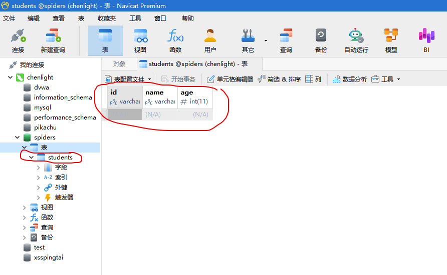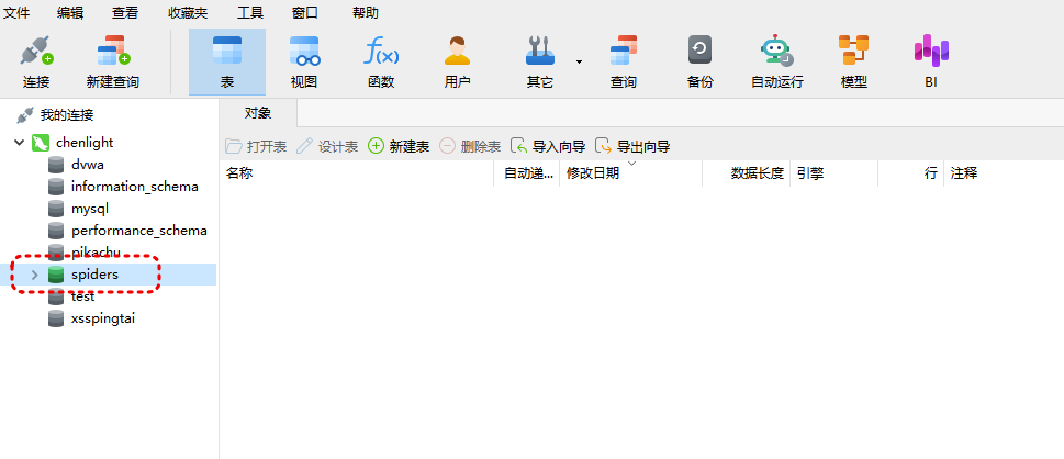 同时,也创建了spiders数据库