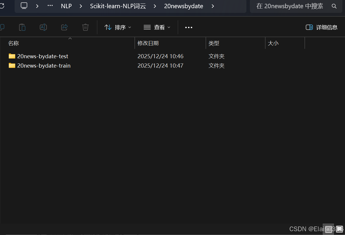 - 下载成功之后进行解压,数据集包含训练集与测试集,全部当作文本数据即可,因为本次为词云统计,而不是机器学习。
