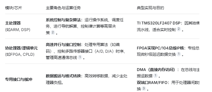 现代高性能飞控计算机常采用异构计算架构来满足实时性要求。下表对比了核心处理器与辅助模块的分工: