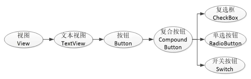 在Android体系中,CompoundButton类是抽象的复合按钮,因为是抽象类,所以它不能直接使用。实际开发中用的是CompoundButton的几个派生类,主要有复选框CheckBox、单选按钮RadioButton以及开关按钮Switch,这些派生类均可使用CompoundButton的属性和方法。加之CompoundButton本身继承了Button类,故以上几种按钮同时具备Button的属性和方法