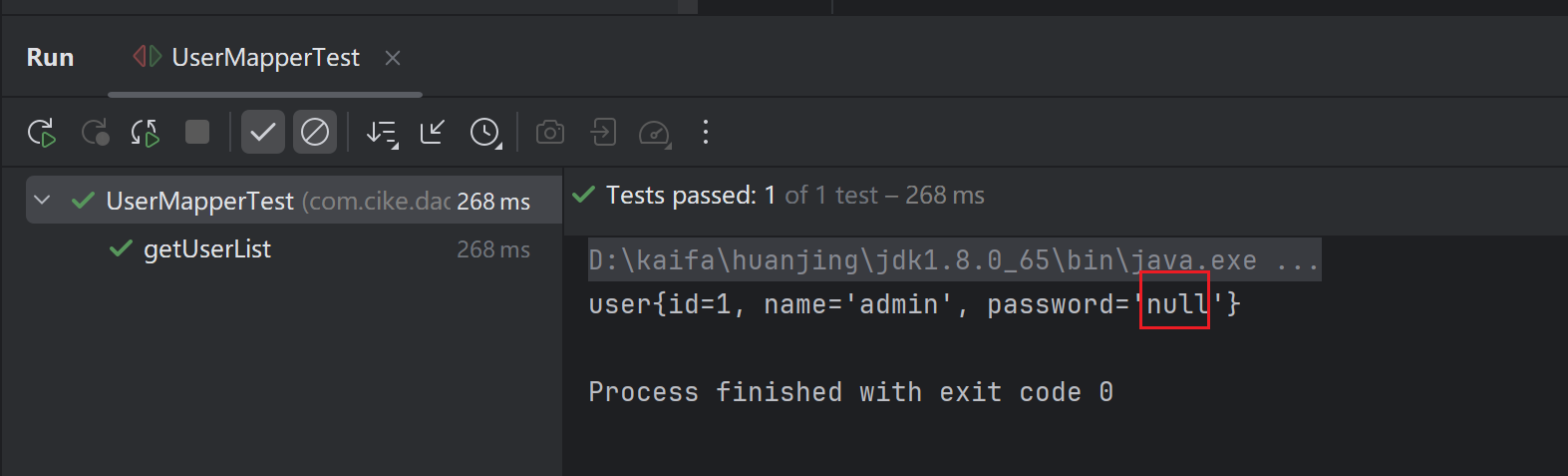 <!--数据库中的列是pwd,实体类中的属性是password,进行结果集映射-->
