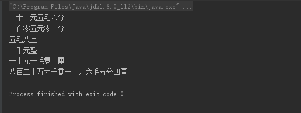 System.out.println(toChineseMoney(12.56)); // 十二元五毛六分