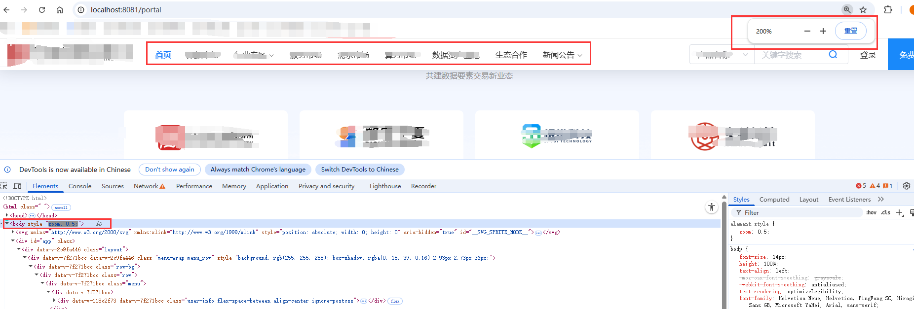 * 高版本 Chrome 在 body 缩放后,getBoundingClientRect 返回的坐标未同步缩放,
