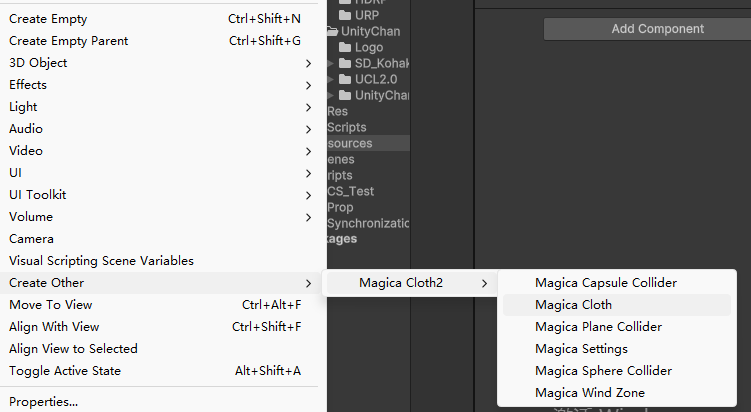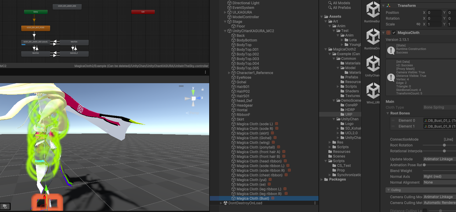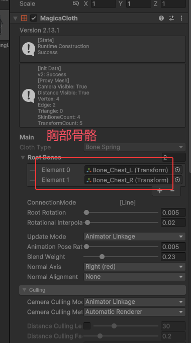 用的是Magica Cloth 2插件,里面有个demo,查看示例是怎么使用的: