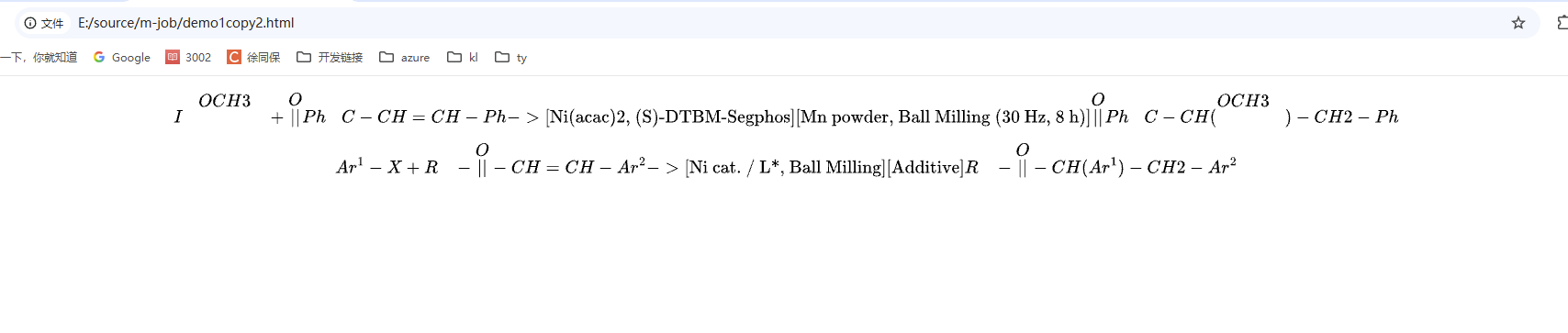 '\n\n\\[\\ce{Ar^{1}-X + \\chemabove{R}{\\phantom{}} \\chembelow{}{\\displaystyle\\overset{\\displaystyle O}{||}} -CH=CH-Ar^{2} ->[\\text{Ni cat. / L*, Ball Milling}][\\text{Additive}] \\chemabove{R}{\\phantom{}} \\chembelow{}{\\displaystyle\\overset{\\displaystyle O}{||}} -CH(Ar^{1})-CH2-Ar^{2}}\\]\n\n'