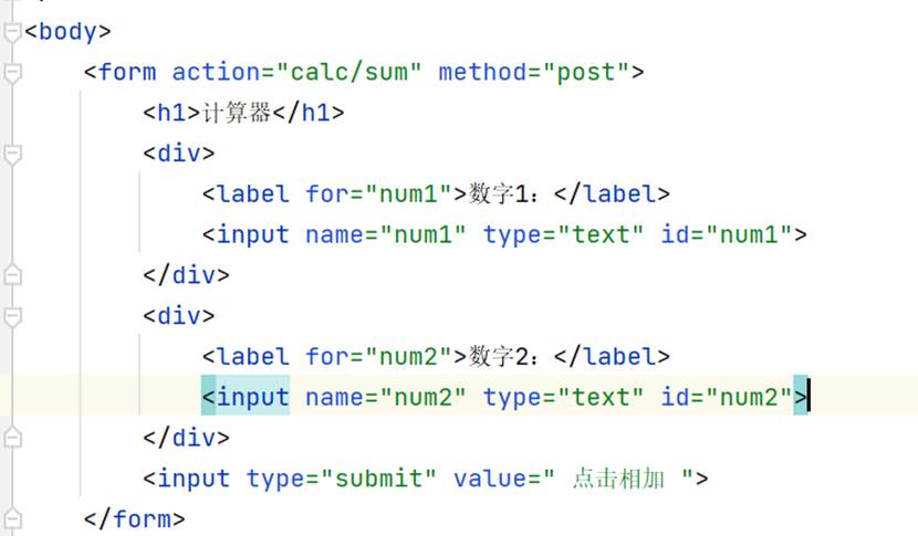 前端代码也很简单,只给HTML,需要加样式的可以自己加,这里使用了表单的方法,action告诉浏览器,如果后续有button按钮,就按照这个地址去提交即可