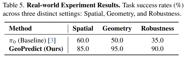 在三大真实世界任务中,GeoPredict 展现出卓越的 3D 推理泛化能力: