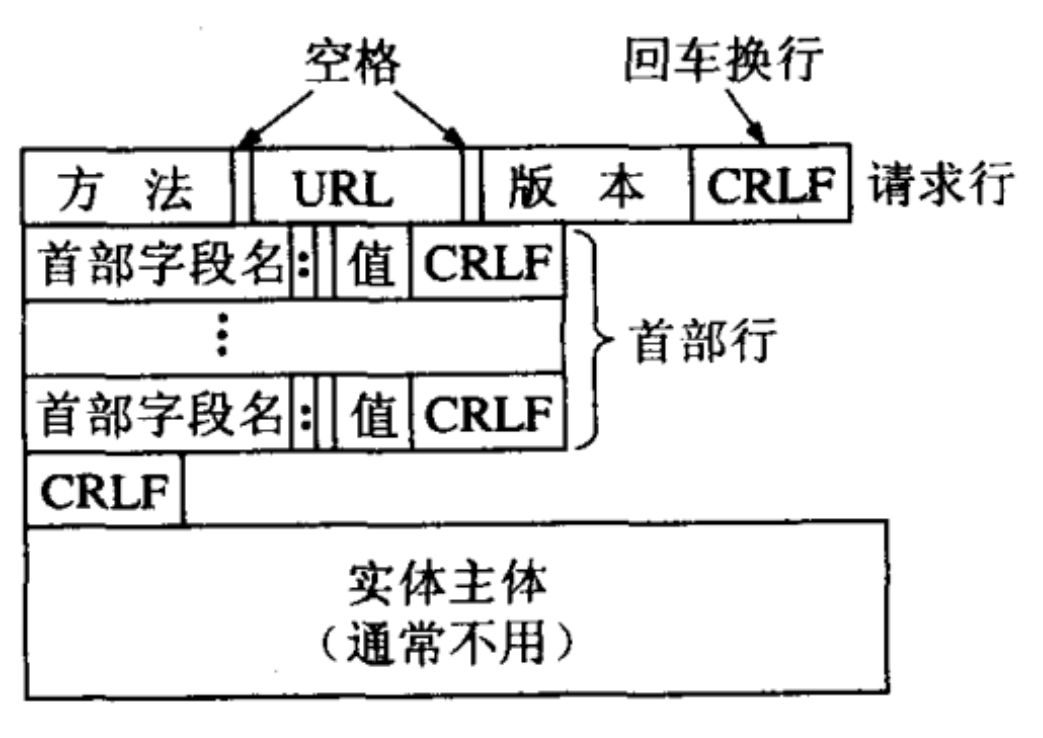 - **空行:**用于分隔首部字段与实体主体,仅包含回车换行符;