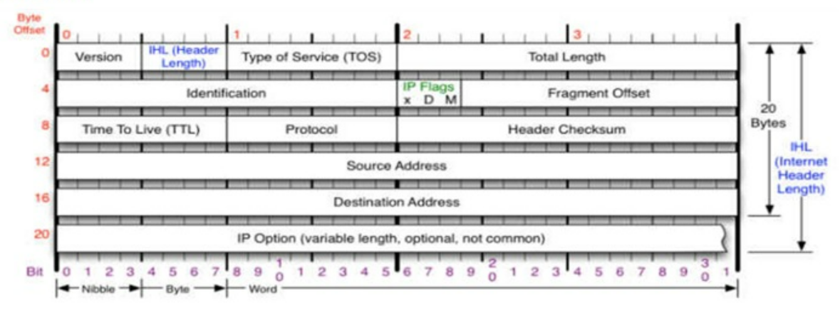 IP 头是网络层的核心协议头,IPv4 协议头的核心字段包括: