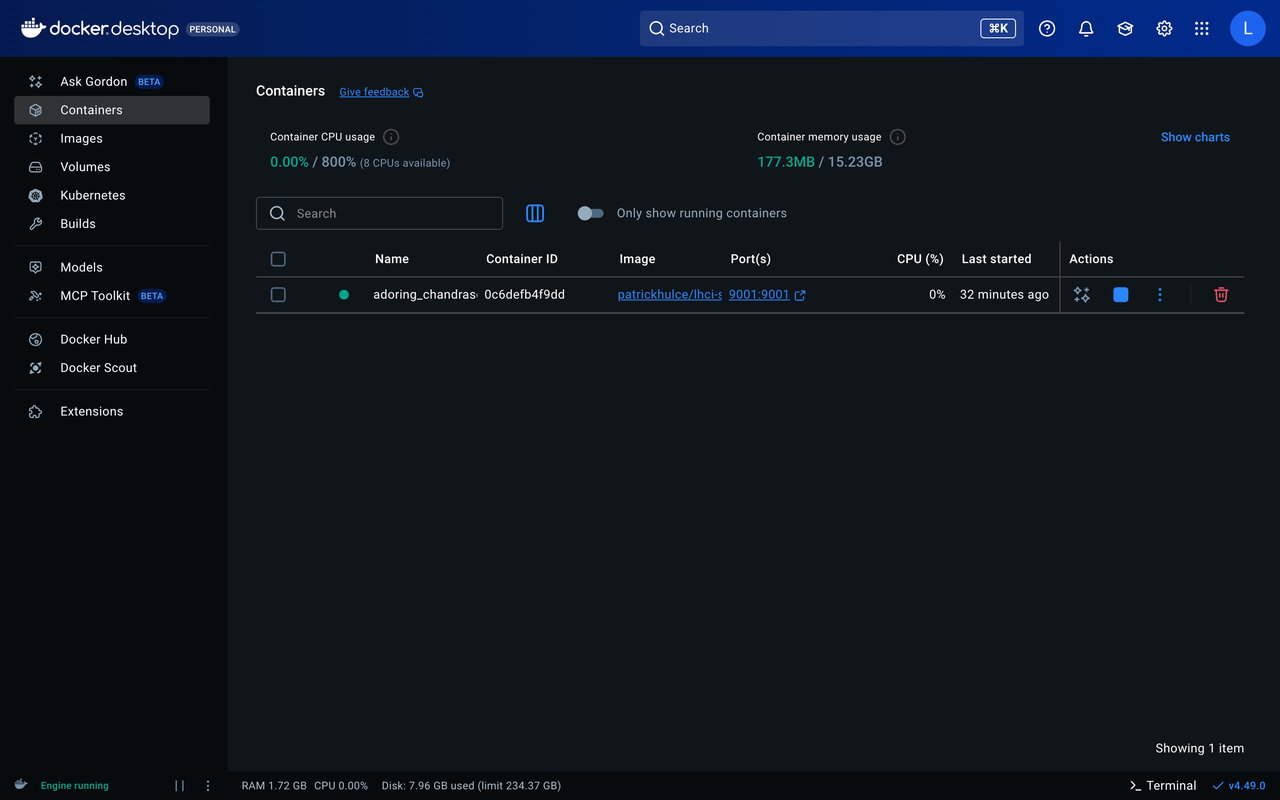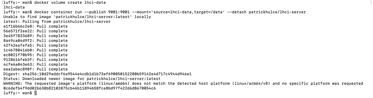 docker container run --publish 9001:9001 --mount='source=lhci-data,target=/data' --detach patrickhulce/lhci-server