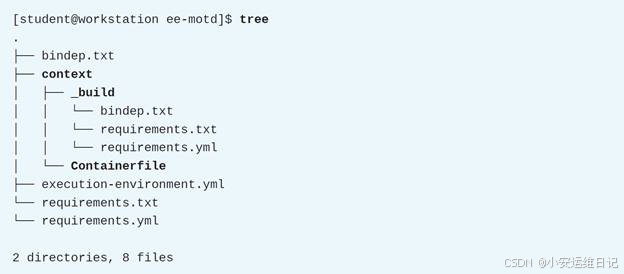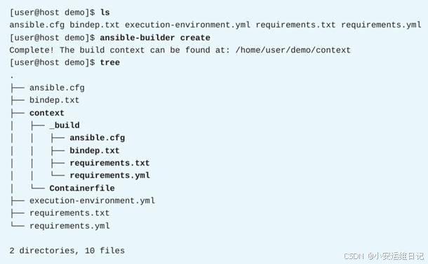 在~/create-review/ee-build/目录中,使用ansible-builder命令(通过执行构建过程的第一阶段)来创建ee-build/context/目录。